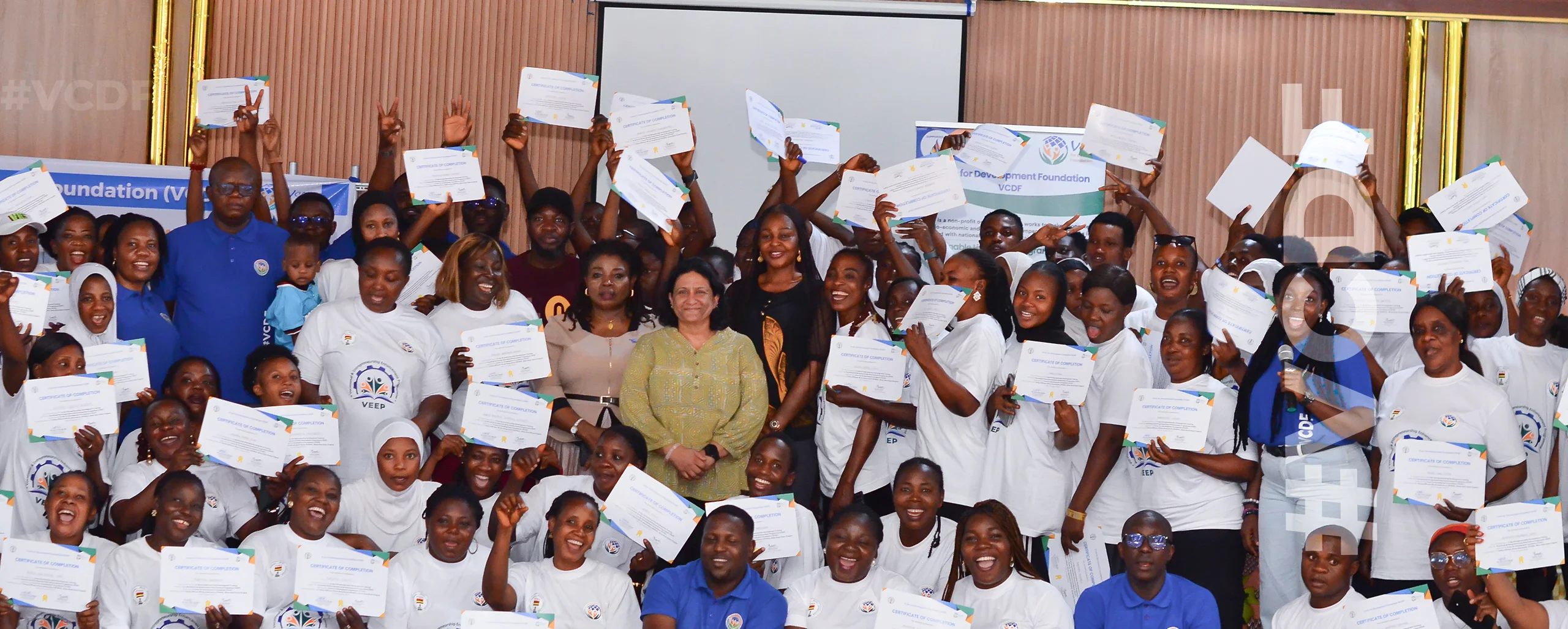 The programme is designed to equip individuals with essential entrepreneurial and life skills needed to start, manage, and scale sustainable businesses. It also provides access to finance, mentorship and market linkages. Beneficiaries include youths in correctional centres, widows, police wives, and women in underserved communities. In collaboration with the State Ministries of Women Affair and Poverty Alleviation, Nigerian Correctional Centre, Lagos, Iru Local Council Development Area, Police Officers’ Wives Association (POWA) and other partner NGOs, VCDF impacted over 500 women and youths in Lagos and Akwa Ibom, from 2023 to 2025, helping them contribute meaningfully to their communities.